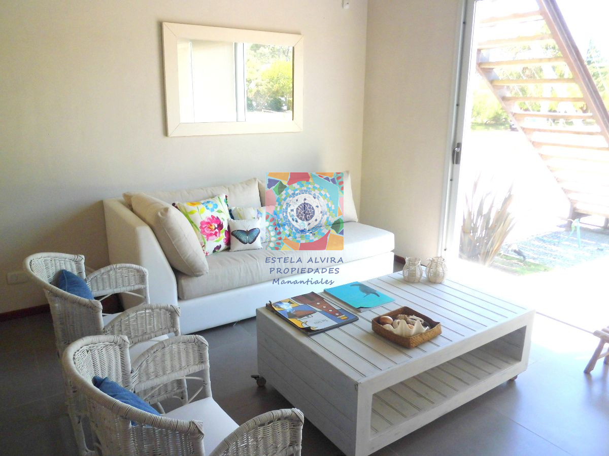 Muy lindo apartamento en Manantiales a metros de playa Bikini. Cuenta con: 3 dormitorios, 3 baños ( principal en suite), living comedor, cocina, muy bien equipado,parrillero, alarma, servicio de mucamas.